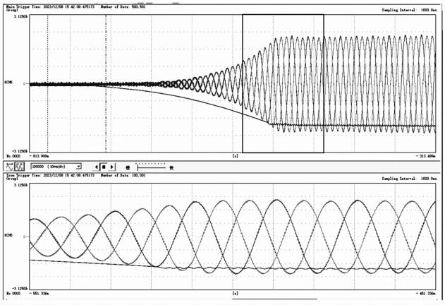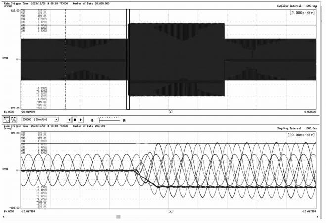 設(shè)備在項(xiàng)目中運(yùn)行正常穩(wěn)定,圖8所示為交流端口投入初始電流波形,交流端口在穩(wěn)定直流母線電壓方面采用在近母線側(cè)多配置支撐電容加提高開(kāi)關(guān)頻率方式降低母線電壓紋波。