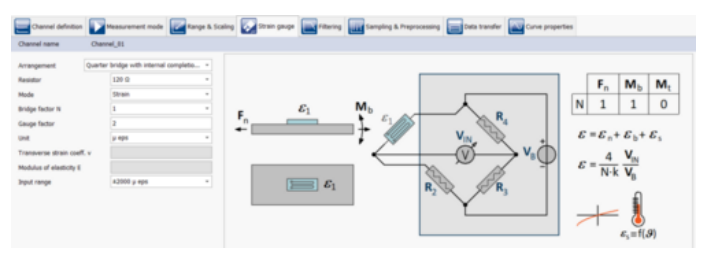 圖3 1/4橋應(yīng)變片實驗配置界面