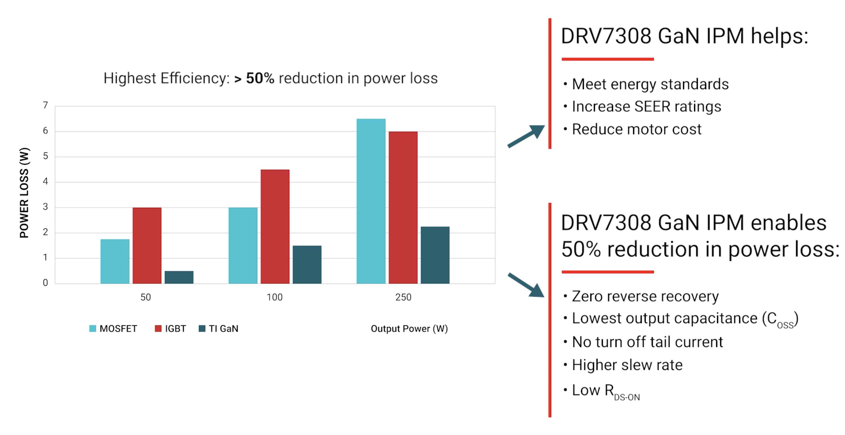 Charlie Munoz強調(diào),實現(xiàn)更高的電機驅(qū)動效率對于家電滿足更高的標準至關(guān)重要:客戶可以通過選擇TI GaN IPM,來將原先僅滿足舊標準的設(shè)備更新到符合更高的能效要求;或者在同樣的能效表現(xiàn)上,選擇更低成本的電機配合GaN IPM從而實現(xiàn)系統(tǒng)成本降低。