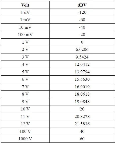 相反,下表顯示了一些電壓轉(zhuǎn)換為其各自的 dBV 值。此轉(zhuǎn)換對(duì)于比較不同測(cè)量之間的電壓值很有用。