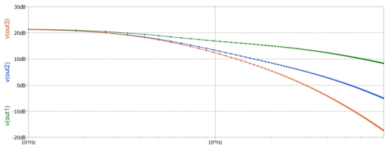 圖 6:低通濾波器在三個(gè)輸出端的頻率響應(yīng)