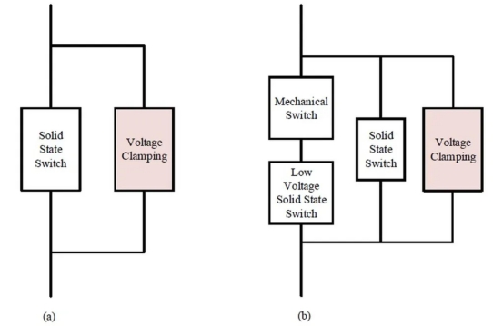 圖 1:SSCB 和 HCB 都需要加入電壓鉗位元件,這是其基本結(jié)構(gòu)所必需的。左側(cè)顯示了 SSCB 的基本結(jié)構(gòu);右側(cè)顯示了 HCB 的基本結(jié)構(gòu)。