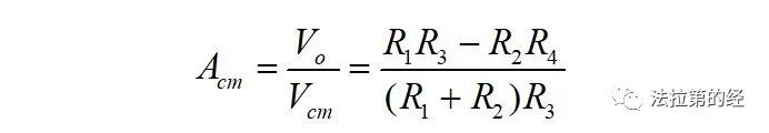 當(dāng)電路輸入共模型號(hào)即Vcm=V1=V2時(shí)共模增益Acm為