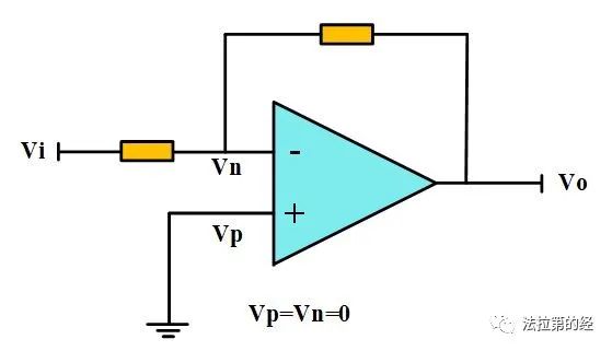 理解共模差模信號(hào)后我們?nèi)菀装l(fā)現(xiàn)反向輸入端運(yùn)放幾乎不存在共模信號(hào)問題。如圖2的反向比例放大電路,由于Vp已經(jīng)接地且運(yùn)放正常工作時(shí)處于深度負(fù)反饋狀態(tài)所以Vn=Vp=0,可見此時(shí)運(yùn)放的兩個(gè)輸入端電壓與地不存在電勢(shì)差所以也不會(huì)有共模電壓?jiǎn)栴}。