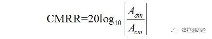 共模抑制比表示為運(yùn)放對(duì)差模信號(hào)的增益Adm與對(duì)共模型號(hào)的增益Acm之比,通常以分貝為單位表示如下: