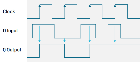 最簡單的同步邏輯器件是觸發(fā)器。D輸入的邏輯狀態(tài)只有在時(shí)鐘上升沿之后(經(jīng)過D觸發(fā)器傳播延遲后)才會出現(xiàn)在Q輸出上。MSO是驗(yàn)證觸發(fā)器工作狀態(tài)和調(diào)試數(shù)字電路的理想工具。