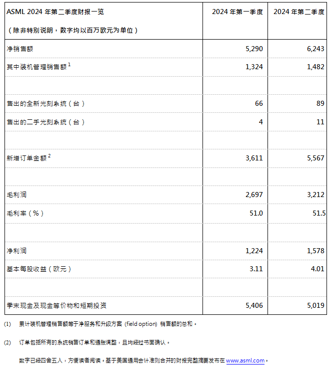 ASML發(fā)布2024年第二季度財(cái)報(bào) | 凈銷售額62億歐元,凈利潤為16億歐元,預(yù)期下半年業(yè)績表現(xiàn)強(qiáng)勁,2024年凈銷售額將與2023年基本持平