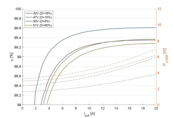 圖3:部分功率轉(zhuǎn)換器的測量效率曲線。