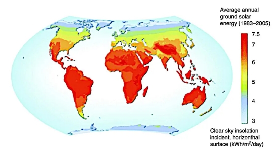 圖2:1983年至2005年年均太陽(yáng)能分布情況(資料來(lái)源:研究報(bào)告)