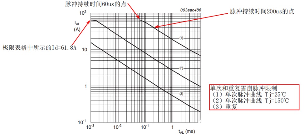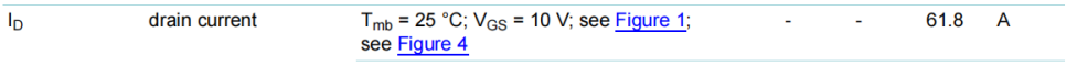 可以看到極限值表格中的Id-max=61.8A是左邊紅色箭頭所指值。