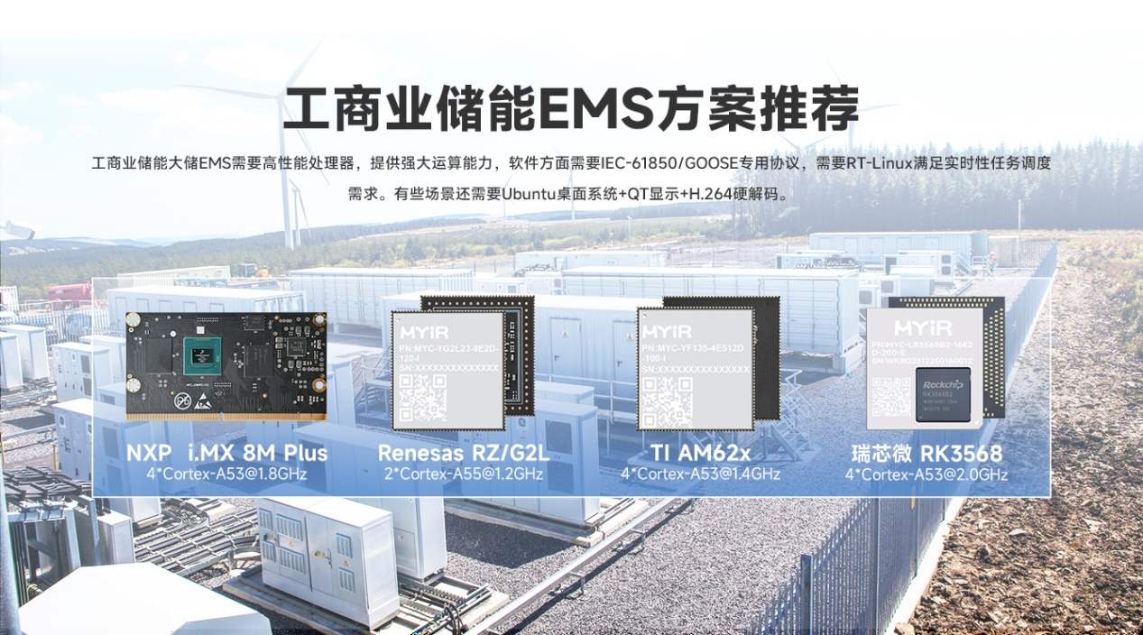 米爾嵌入式處理器模組在新能源行業(yè)主要在能量管理系統(tǒng)EMS、儲能變流器PCS、電池管理系統(tǒng)BMS、逆變器數(shù)據(jù)采集器、新能源充電樁等產(chǎn)品上應(yīng)用。