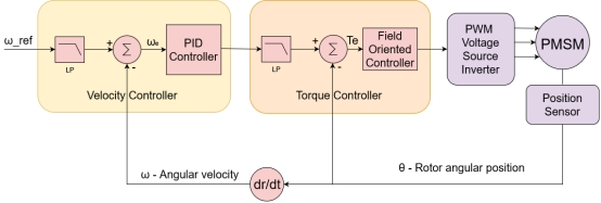 速度控制器(外環(huán)) 控制電動機的速度,與內(nèi)循環(huán)相比,運行更慢。當一個目標值,例如一個特定的電機速度,被設(shè)置為這個循環(huán),它的輸出級聯(lián)下降,成為內(nèi)環(huán)的參考,表示所需的扭矩。這種分層結(jié)構(gòu)確保系統(tǒng)反應更快,并加強其對抗干擾的能力。