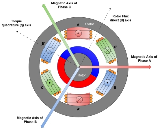 通過將三相ABC參考框架轉(zhuǎn)換為DQ協(xié)調(diào)系統(tǒng),FAC在電動機控制方面提供了一個重大飛躍。這種變換為兩個軸上幾乎均勻的磁場鋪平了道路。結(jié)果是什么?一種系統(tǒng),可以促進在兩個DQ方向的電流的獨立控制,類似于保持速度的電機,與定子繞組引起的磁場同步。