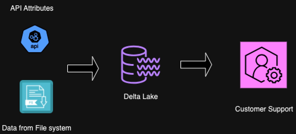 為了更深入地研究這些工具中每個工具的概念,我們將考慮一個定義了工作流的數(shù)據(jù)結(jié)構(gòu)。在本例中,我們有一個客戶實體表示為一個表,其中的屬性來自一個文件系統(tǒng)和一個API。