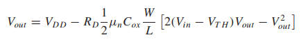 Vout=VDD-IDRD,對于M1晶體管而言,VGS=Vin;VDS=Vout。