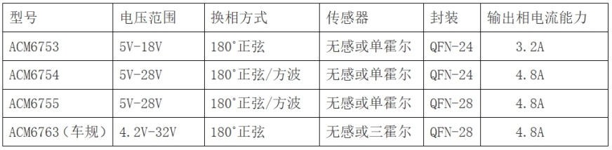 (2)正弦波控制:使用的是SVPWM波,輸出的是3相正弦波電壓,電機(jī)相電流為正弦波電流??梢哉J(rèn)為在一個電氣周期內(nèi)進(jìn)行了多次的連續(xù)變化換向,無換相電流突變。顯然,正弦波控制相比方波控制,其轉(zhuǎn)矩波動較小,電流諧波少,控制起來感覺比較“細(xì)膩”。高集成度一直是集成電路設(shè)計行業(yè)不斷探索的目標(biāo)。就電機(jī)驅(qū)動控制專用芯片而言,如果單顆芯片能集成更多的器件和功能,則其應(yīng)用于具體下游產(chǎn)品時,可大大簡化外圍電路、減少外圍器件,更好地滿足終端應(yīng)用需求,實現(xiàn)降本增效,提升整體方案的可靠性。深圳市永阜康科技有限公司致力于內(nèi)置MOS+預(yù)驅(qū)+算法、全集成三相直流無刷電機(jī)驅(qū)動芯片的推廣,全系列產(chǎn)品系列外圍僅需幾個阻容,選型列表如下: