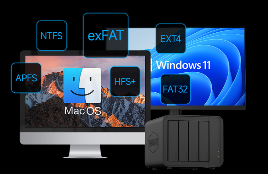 D8 Hybrid支持多種文件系統(tǒng)格式,包括NTFS、APFS、EXT4、FAT32和exFAT,這使得它能夠輕松融入各種應(yīng)用場(chǎng)景。特別是exFAT文件系統(tǒng),允許大文件在不同操作系統(tǒng)(如Windows、Mac和Linux等)間無(wú)縫傳輸,極大提升了跨平臺(tái)使用的便利性。此外,D8 Hybrid還能作為鐵威馬NAS產(chǎn)品的擴(kuò)展存儲(chǔ),為用戶(hù)提供更加完整的存儲(chǔ)解決方案,進(jìn)一步鞏固了其在市場(chǎng)中的領(lǐng)先地位。