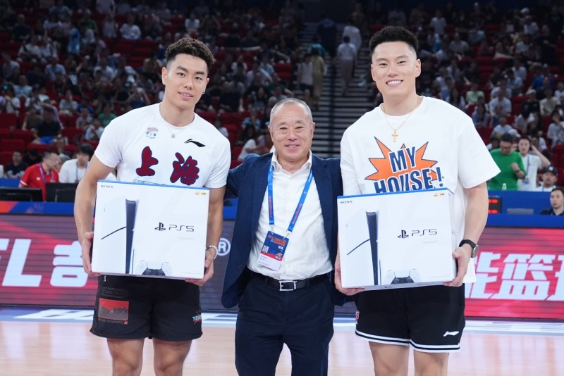 比賽間隙中的大屏互動游戲“CAMERA MAN”、“HUG CAM”和“KISS CAM”同樣也由索尼數(shù)碼影像產(chǎn)品和解決方案提供支持,更有提前抽取的幸運觀眾進場與上海久事大鯊魚籃球隊的球員李添榮和李弘權(quán)同場PK PlayStation 5平臺游戲《NBA 2K24》的游戲環(huán)節(jié),觀眾通過現(xiàn)場大屏觀看了游戲世界同樣緊張刺激的籃球比賽。索尼中國總裁吉田武司、索尼互動娛樂(上海)有限公司董事長兼總裁江口達雄分別為李添榮、李弘權(quán)兩位球員代表以及抽獎環(huán)節(jié)的幸運觀眾贈送了PlayStation 5游戲主機。