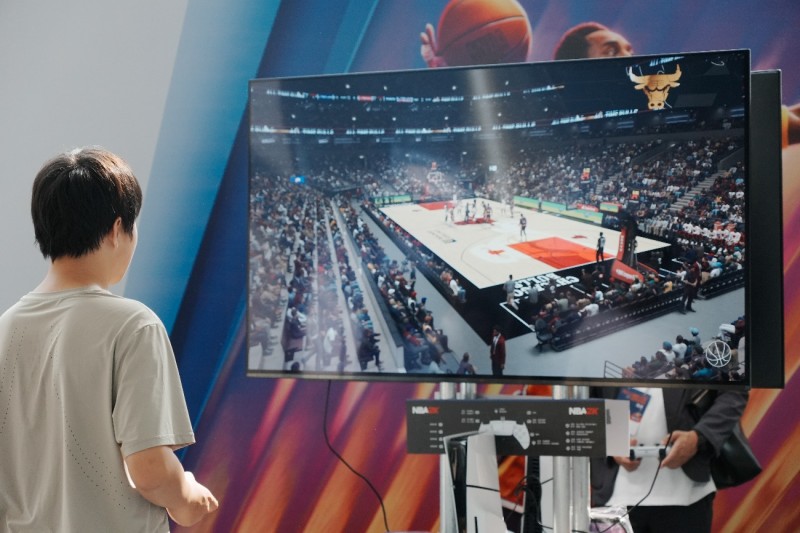 在場外PlayStation游戲體驗區(qū),許多觀眾還排隊體驗了NBA籃球游戲《NBA 2K24》,并參與了打卡抽獎活動,獲得了《NBA 2K24》圍巾等游戲周邊和胡子碰碰貼紙等禮品。