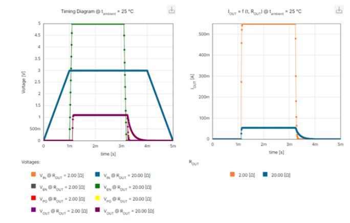 SPICE Live Model 環(huán)境還支持用戶將評估結果輸出到交互式圖表中,從而直觀地呈現各種工作參數,例如:電壓、電流、能效、功耗及其統(tǒng)計評估(在某些情況下)。