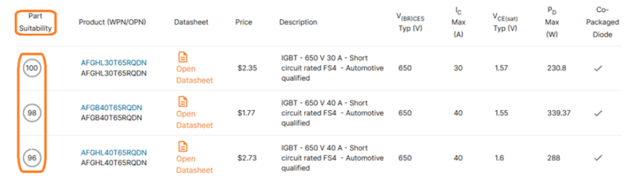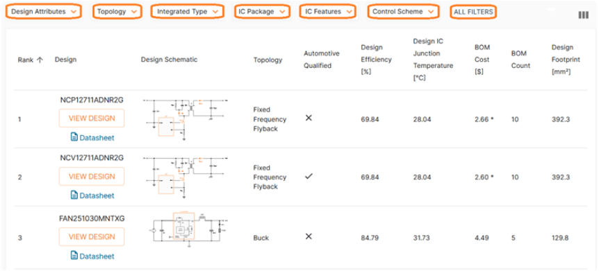 該工具還提供快速篩選選項,可將關鍵參數歸攏到一個表中,以便您輕松找到最佳方案。