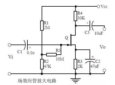 場效應(yīng)管放大電路的電路圖如下圖所示: