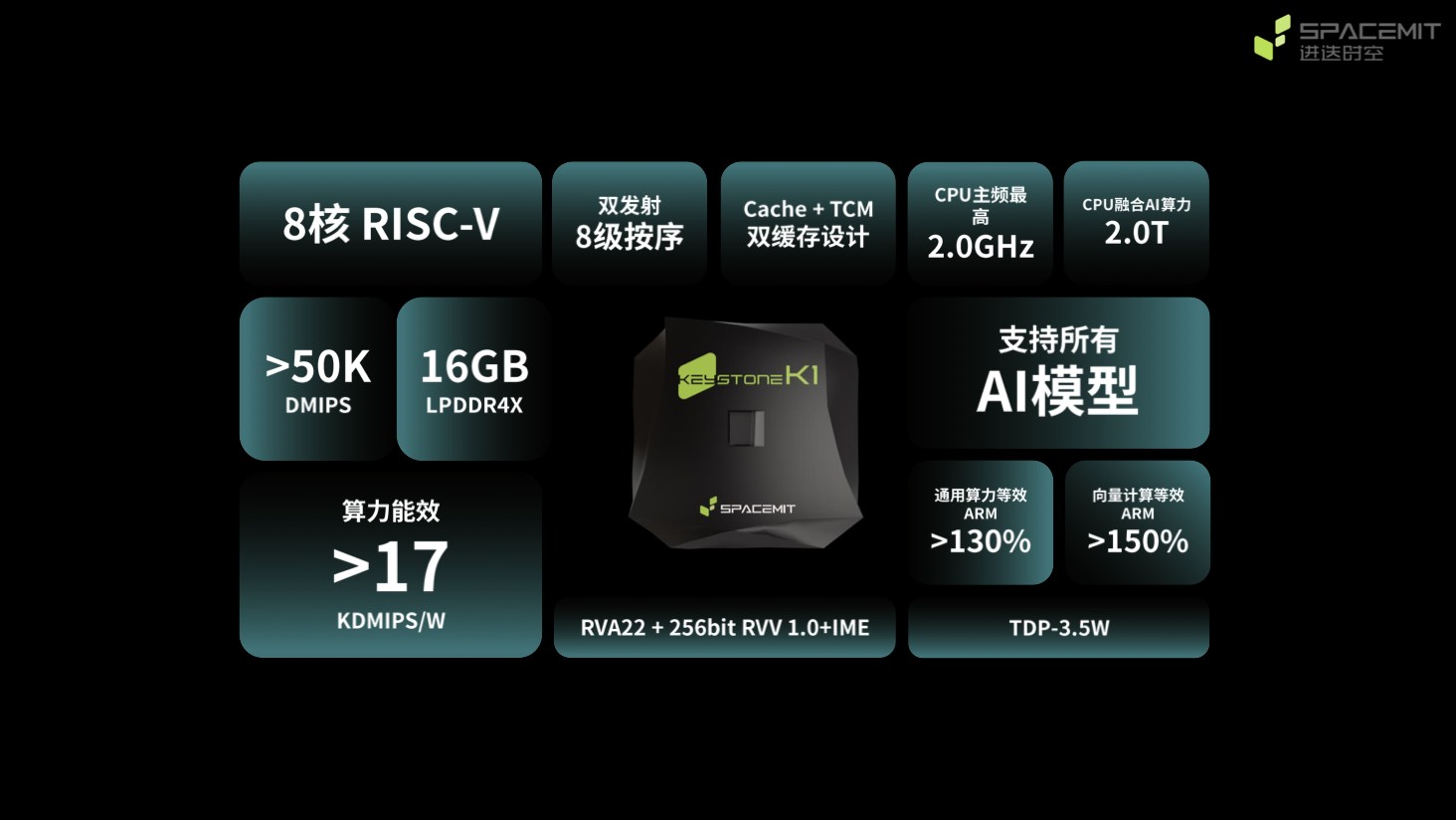 在效率、功耗和算力成本上實現(xiàn)對于X86和Arm的全面超越|進迭時空于上海滴水湖論壇展示全球首款8核RISC-V AI CPU——SpacemiT Key Stone K1