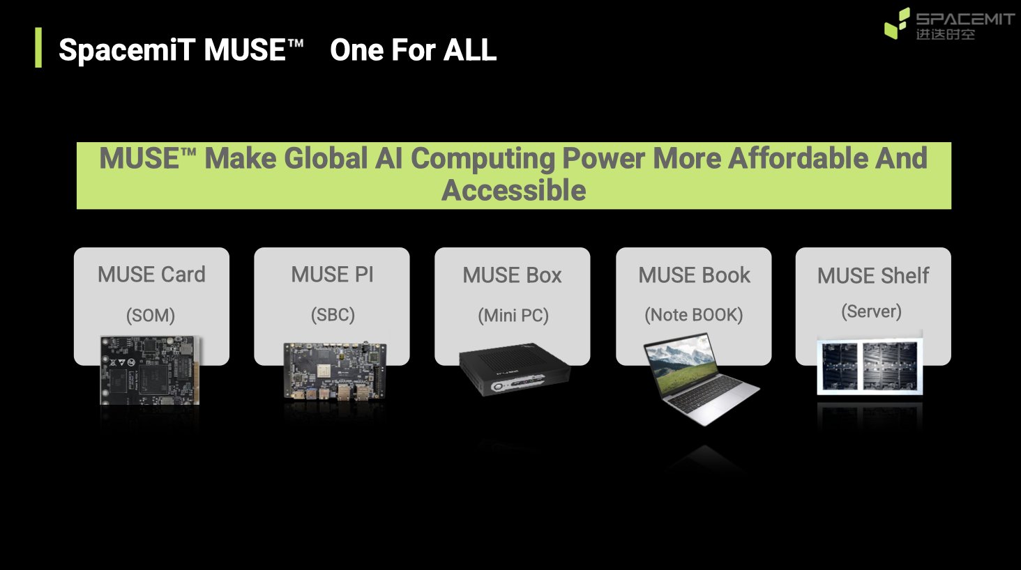 據(jù)了解,進迭時空的通用算力和向量計算性能較ARM同系列產(chǎn)品有顯著優(yōu)勢。目前,K1芯片主要應用于SBC、NAS、筆記本電腦、智能機器人、工業(yè)控制和邊緣計算等領域。而為了幫助開發(fā)者加快在K1系列上快速完成產(chǎn)品研發(fā),進迭時空也配套推出了完備的開發(fā)套件、包含軟硬件的開發(fā)平臺等資源。段佳惠表示,進迭時空推出的MUSE系列產(chǎn)品旨在面向所有開發(fā)者,共建完整生態(tài),讓開發(fā)者更便捷地使用AI算力。因此,進迭時空推出了從SOM到服務器的完整生態(tài)產(chǎn)品系列,這些產(chǎn)品已在進迭時空官方淘寶店批量發(fā)貨。
