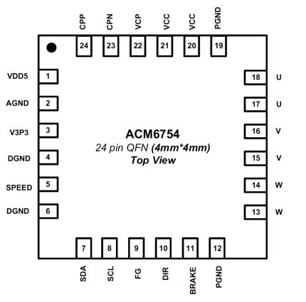 ACM6754 24V/4.8A三相無感無刷直流BLDC電機驅(qū)動芯片方案