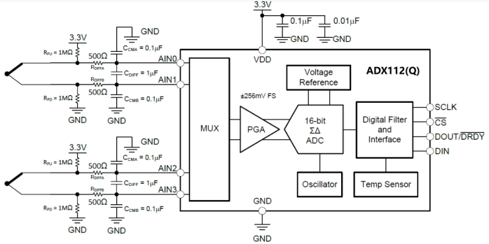 通過上述精確的軟件設(shè)計方法,可以充分利用ADX112Q的高性能特性,實現(xiàn)熱電偶檢測中的高精度溫度測量。