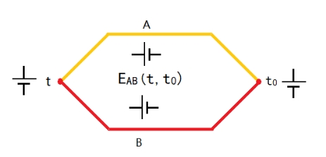 熱電偶回路兩接點(溫度為t,t0)間的熱電勢,等于熱電偶在溫度為t、tn時的熱電勢與在溫度為tn、t0時的熱電勢的代數(shù)和。tn即中間溫度。