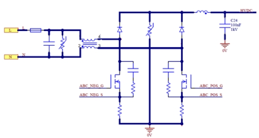 Pulsiv OSMIUM技術通過感應交流電線路電壓和頻率來調(diào)整電容器充電時間,從而讓電路在交流零電壓交越時不消耗線路電流。這能夠?qū)崿F(xiàn)簡單的半有源橋,以提高效率,特別是在低壓條件下。它對位于下半部分交流轉(zhuǎn)直流橋中的MOSFET進行精細控制,并與高側(cè)二極管結(jié)合使用。此設計中的半有源橋在效率、成本和復雜性之間實現(xiàn)了微妙平衡,支持通用輸入,并在115V交流電源下將滿載效率提升0.7%。