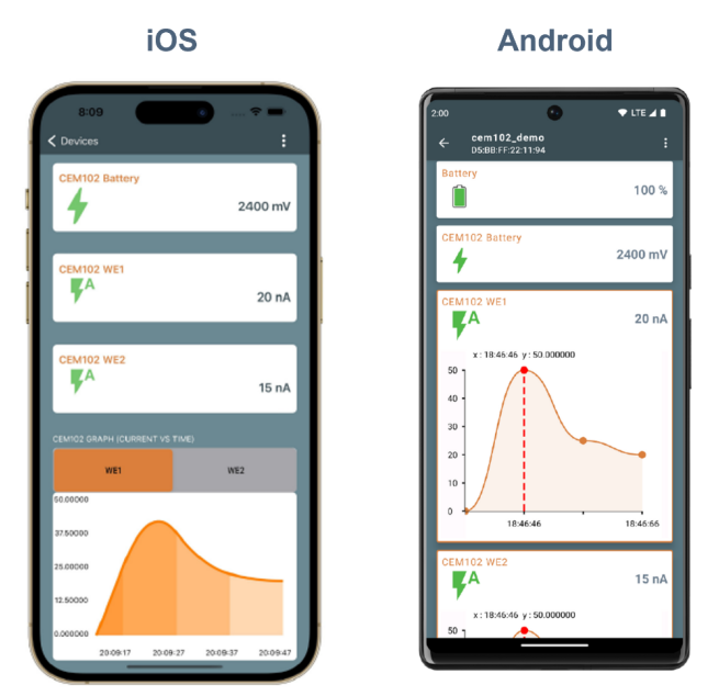 該解決方案獲固件、軟件等全方位的開(kāi)發(fā)支持,包括iOS®和Android?演示應(yīng)用程序(圖4)。此外,安森美還提供CEM102評(píng)估板,配備完整示例代碼用于設(shè)置和進(jìn)行測(cè)量,從而更輕松地開(kāi)始系統(tǒng)開(kāi)發(fā)。這一綜合解決方案旨在簡(jiǎn)化開(kāi)發(fā),促進(jìn)新一代電流型傳感器技術(shù)的更大程度集成和創(chuàng)新。