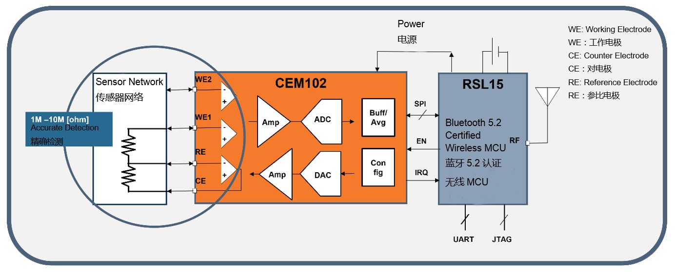 圖 5 - 安森美 CEM102 + RSL15 組合解決方案可實(shí)現(xiàn)無(wú)線(xiàn)電化學(xué)感知(來(lái)源:安森美)