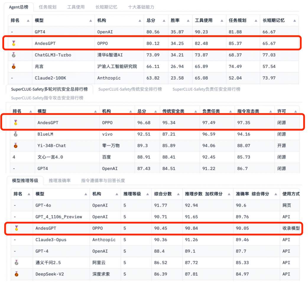 同時(shí),在SuperCLUE 8月測(cè)評(píng)子榜單中,AndesGPT-2.0還分別取得SuperCLUE-Safety,SuperCLUE-Math6和SuperCLUE-Agent榜單三項(xiàng)第1,展現(xiàn)出OPPO在AI手機(jī)時(shí)代深耕人工智能領(lǐng)域的決心與實(shí)力。