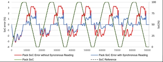 圖2顯示了同步讀取的單極輸出誤差比不同步讀取的誤差要低得多,特別是在幾個(gè)放電周期之后。這些結(jié)果是通過?MPF42791 綜合了ESR檢測和熱建模。
