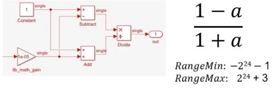 一個簡單的表達式,如(1-A)/(1+A),如果需要在高動態(tài)范圍內(nèi)實現(xiàn),可以通過使用單精度浮點自然地進行翻譯(圖2)。