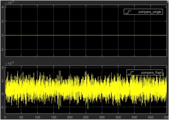 當我們跑的時候?固定點設(shè)計師 為了執(zhí)行轉(zhuǎn)換,我們指定了1%的誤差公差.圖5顯示了比較結(jié)果。單精密版的誤差在10左右。 -8 ,而定點數(shù)據(jù)類型的錯誤約為10 -5 .這在我們指定的誤差范圍內(nèi).如果您的應(yīng)用程序需要更高的精確度,您可能需要增加固定的單詞長度。