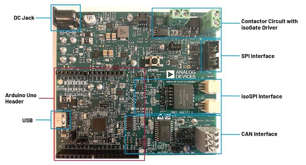 ADI公司的ESCU可與各種BMS器件(AFE、電量計(jì)、isoSPI收發(fā)器)接口對(duì)接。BMS控制板硬件和組成部分的亮點(diǎn)包括: