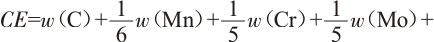 式中:w(X)表示元素X在鋼中的質(zhì)量分數(shù)(%),計算碳當量時,應(yīng)取其成分的上限[1]。