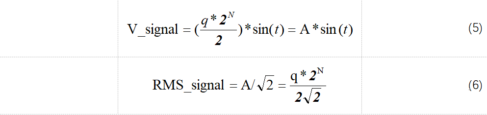 對(duì)于一個(gè)滿量程輸入的正弦信號(hào)見公式(5),根據(jù)公式(5)可以求得公式(6)