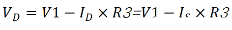 漏極的直流電位VD是從電源電源V1減去V3上的壓降。因為漏極電流和源極電流一樣,即ID=IS。因此漏極電壓為