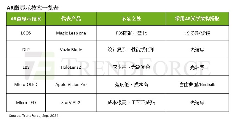 TrendForce集邦咨詢指出,AR裝置憑藉其輕量和小型化,被視為AI的理想載體。而LEDoS光源特性可滿足AR裝置對(duì)高亮、微小和低功耗的需求,因而被認(rèn)為是AR裝置重要的技術(shù)儲(chǔ)備。如果LEDoS全彩化方案能夠透過垂直堆疊或色彩轉(zhuǎn)換方案實(shí)現(xiàn),將有望成為未來AR眼鏡的最佳技術(shù)方案。