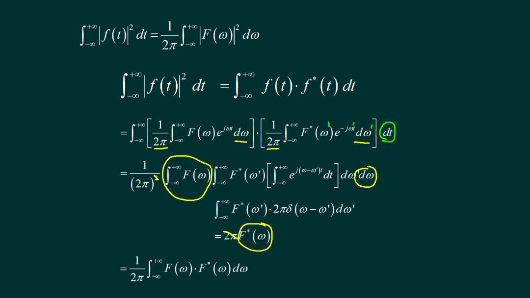 ??消去一個(gè) 2 π,然后將最后一個(gè)積分合并在一起,這就是到了我們需要證明的結(jié)果了。最后一個(gè)等式,實(shí)際上就是信號(hào)頻譜能量的表達(dá)式了。