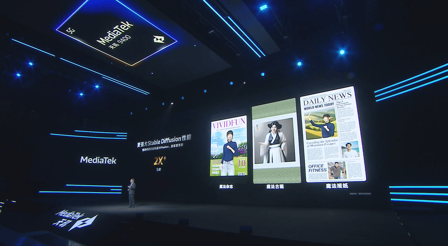 天璣9400的Stable Diffusion性能相較前代提升了2倍,可以根據(jù)用戶照片的身體姿態(tài),生成各種頗具創(chuàng)意的動圖,讓用戶在手機端側就可以輕松發(fā)揮創(chuàng)造力。