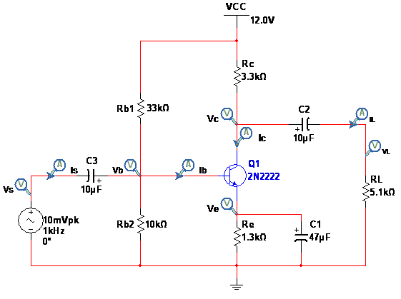 靜態(tài)即直流工作狀態(tài)。先構(gòu)建如下所示的基本共射極放大電路: