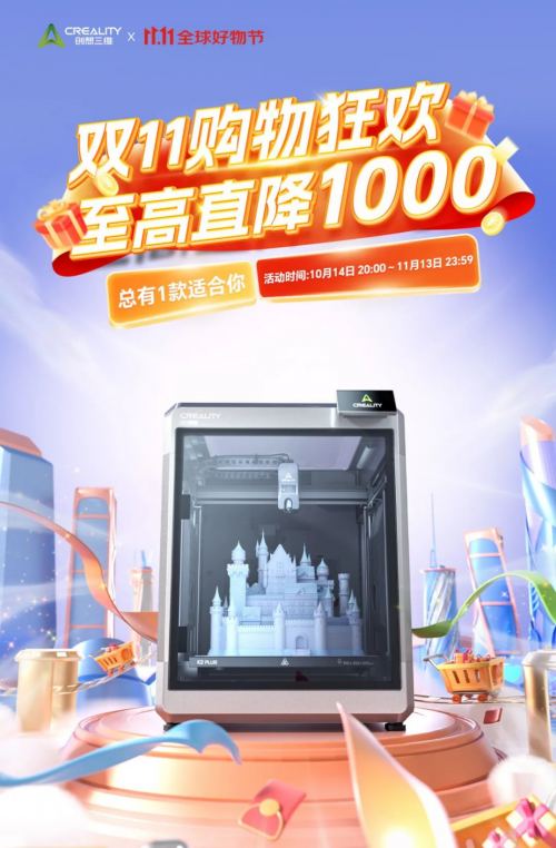 雙十一購物慶典搶先開啟,創(chuàng)想三維3D打印品牌盛惠來襲