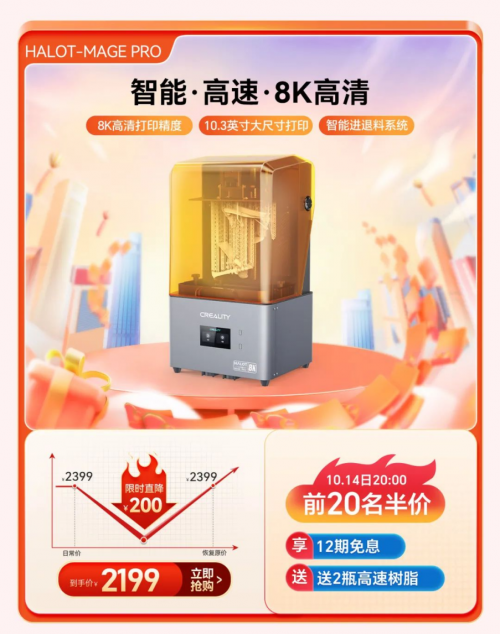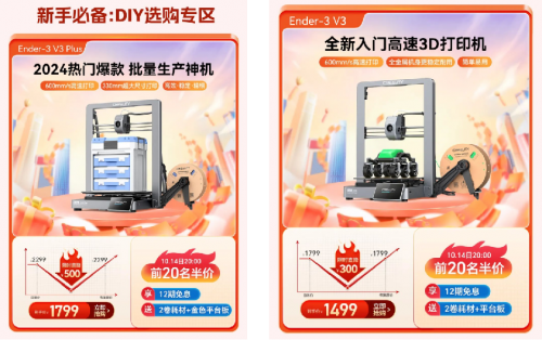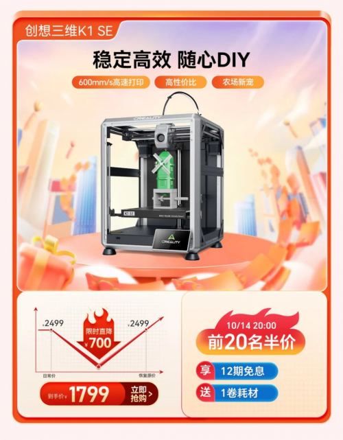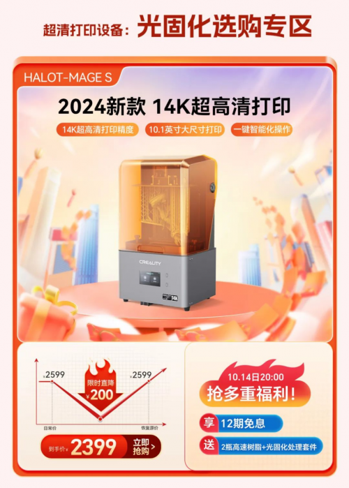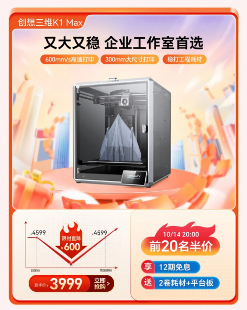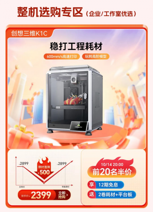 備受矚目的雙十一購物節(jié)今年再度升級,提前至10月14日拉開帷幕,作為全球領(lǐng)先的3D打印設(shè)備生產(chǎn)商,創(chuàng)想三維深知每一位消費者對3D打印的深切熱愛與無限期待,已為您精心策劃了一場滿載驚喜的購物狂歡,特此推出了更為豐富多元的優(yōu)惠活動,包含20個半價搶購名額、現(xiàn)金紅包返還、購買設(shè)備即贈送耗材/樹脂/炭包/平臺板/創(chuàng)想云會員,以及限時折扣、多買多贈等多重玩法。期待每一位渴望創(chuàng)新與創(chuàng)造的您,在這場年度大促中,輕松邂逅心儀的3D打印設(shè)備,共同探索創(chuàng)意與技術(shù)交織的美妙世界。