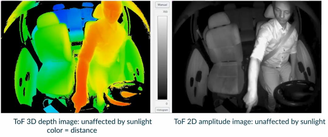 車內(nèi)ToF記錄3D深度視頻流與近紅外2D對比