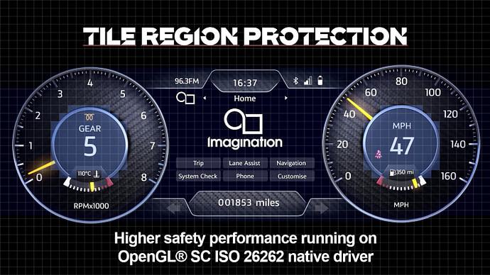 不僅功能更強大,它還符合ISO 26262安全標準以及ASIL-B等級的要求。這意味著它可以用于信息娛樂和非關鍵型顯示,也可以為屏幕上的速度表、檔位指示器和警示燈等安全關鍵型顯示提供支持。
